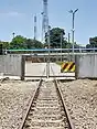 A railroad switch at the end of the Merak Station emplacement which is used for locomotive shunting