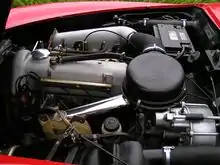 An updated version of the M121 engine, called the M121 BII, was produced for the Mercedes 190SL.[3] The four-cylinder unit has a single overhead camshaft and is regarded as the progenitor of an entire family of engines. The engine developed 77 kW (105 PS; 103 bhp) at 5700 rpm. For the 190SL, acceleration to 100 km/h (62 mph) took 14.5 seconds, and the top speed was 170 km/h (110 mph). This made the M121 BII one of the faster engines on the road in its day. The fuel economy of the M121 BII was 8.6 L/100 km (33 mpg‑imp; 27 mpg‑US).