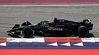 In Bahrain, the season opener of 2023, Russell out-qualified teammate Hamilton by starting 6th, while the latter qualified 7th.[7] In the opening laps, Hamilton was already in 5th place and would finish the race in that position, while Russell inherited Hamilton's starting position with the Aston Martin car of Lance Stroll separating them.[8] In Saudi Arabia, Mercedes had a mixed qualifying session with Russell qualified 4th, while Hamilton qualified in a frustrating 8th place.[9] During the race, Hamilton would finish in 5th, while Russell finished 4th.[10] In Australia, the W14 looked to be competitive around Albert Park with Russell and Hamilton achieving 2nd and 3rd in qualifying.[11] During the race, Russell made an excellent start and inherits the lead from Verstappen, hanging on to it until lap 6 until he pitted with teammate Hamilton inheriting the lead. Verstappen would eventually overtake Hamilton for the lead on lap 12. Russell's race was cut short with a powertrain problem as he retired from the race on lap 18. Hamilton eventually finished the race in 2nd place, achieving W14 and the team's first podium finish of the season.[12] Both Mercedes drivers would finish on the points for the next two races in Azerbaijan and Miami. But neither of the drivers finished on the podium in the aforementioned races.[13][14]