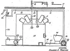 Edward E. Freeman invented a system to control a hot air furnace that uses three thermostatic switches for its operation. A room thermostat starts the stoker. Another thermostat (or limit switch) opens the stoker circuit when the air in the furnace reaches a predetermined temperature, irrespective of the fact that the room thermostat may still call for heat. This second thermostat operates to prevent unsafe conditions due to overheating. The third thermostat is also in the furnace. It controls a fan which forces hot air from the furnace to the rooms. It does not permit the fan to start until the air in the furnace reaches a specified degree of heat. But, at that point, it starts the fan, which continues to run, even though the limit switch has stopped the stoker, so long as the furnace is hot and the room thermostat calls for heat. The patent was on the combination patent of three thermostatic switches, not on any of the switches alone and not on the combination of the fan switch and the limit switch.[9]