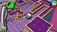 Mercury Meltdown introduces the Playground; a circular arena, with most of the items found in stages to play and test with. Another new mechanic is the ability to change the mercury into 3 new states: Cold, Hot, and Solid. The Hot state makes the mercury an easily splittable liquid that travels quickly. The Cold state makes the mercury a semi-solid blob that moves slowly and is harder to split. The Solid state turns the mercury into a solid ball that can't be split, allowing it to traverse over rails.[1] Multiplayer is accessible between two PSPs via Ad-Hoc wireless mode or online network infrastructure mode. In multiplayer mode, players can participate in battle mode in which players can race each other from previously unlocked single player levels. Bonus stars are replaced with battle pick-ups that can assist players or hinder their opponent.[1]