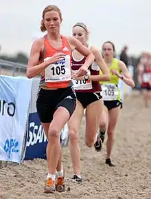 She won the 2009 Rotterdam Half Marathon.[2] She finished tenth at the 2010 edition, but her time of 2:38:41 was a personal best and as the top domestic finisher she was elected the Dutch champion.[3] At the 2012 CPC Loop Den Haag (The Hague), de Knegt reached the podium with a third-place finish.[4]