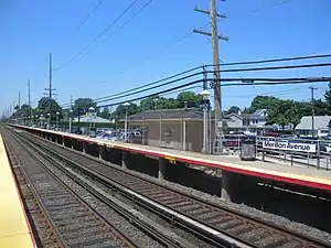Merillon Avenue (/ˈmɛrɪlɒn/) is a station on the Long Island Rail Road's Main Line (Port Jefferson Branch service). It is located at Nassau Boulevard and Merillon Avenue in Garden City Park, New York. The station is wheelchair accessible with two side platforms and a cross-under at Nassau Boulevard.