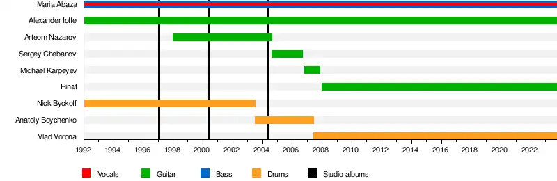 - Mary Abaza — vocals, bass, lyrics (1992–present)
