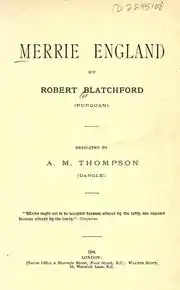 Merrie England is an influential collection of essays on socialism by Robert Blatchford under the pseudonym "Nunquam", published in 1893. The first issue by Nunquam was priced at one shilling.[1] It sold over two million copies worldwide.[2] It was said that for every one convert to socialism made by Karl Marx's Das Kapital there were a hundred converts made by “Merrie England” – though even this may be an underestimate.[3]