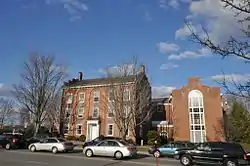 The Merrimack County Bank building is a historic commercial building at 214 North Main Street in Concord, New Hampshire. The three story brick Federal style building was built in 1826 to house the offices of the Merrimack County Bank on the first floor, law offices on the second floor, and a public meeting space above. In 1840, the upper floor was taken over by the New Hampshire Historical Society for use as a library. The Society significantly altered the interior in the early 20th century to convert this space for display purposes. In 1952 the building was acquired by the Christian Mutual Life Insurance Company, which restored the interior to its original Federal appearance, and sold the building to a law firm in the 1970s. The building also housed the law offices of future president Franklin Pierce.[2]