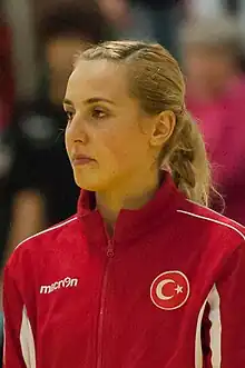 Merve Adıyaman (born 12 September 1994), also known as Merve Özbolluk, is a Turkish women's handballer, who plays in the Turkish Women's Handball Super League for Üsküdar Bld. SK, and the Turkey national team. The 1.80 m (5 ft 11 in)-tall sportswoman plays in the right back position.[1]