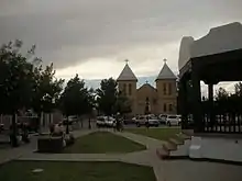 Mesilla Plaza is the central plaza in the small town of Mesilla in far southern New Mexico. The plaza and a number of its surrounding buildings are a National Historic Landmark District, significant for its role in the transfers of power that brought first the original New Mexico Territory and later the Gadsden Purchase into United States control. The most notable building facing the plaza is the Basilica of San Albino, which has been on the plaza since its establishment in 1851. The plaza was declared a National Historic Landmark in 1961.[3][4]