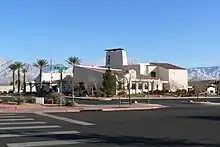 Mesquite is home to several casinos, including the Virgin River Casino, CasaBlanca, Eureka, and Stateline Casino and Motel. The city also includes Rising Star Sports Ranch, a non-gaming hotel and sports facility.[16] The Virgin Valley Heritage Museum has exhibits about area pioneers and local history. The museum building, built in 1940, is listed in the National Register of Historic Places. Mesquite is a stopping point for those traveling along I-15 between Salt Lake City, Las Vegas, and Los Angeles. Mesquite is also a destination for year-round golf, with over nine public courses in the warm desert climate, it draws golfers from all over. Mesquite Airport provides facilities for general aviation and skydiving.[7] It previously hosted the annual RE/MAX World Long Drive Championship until 2015.