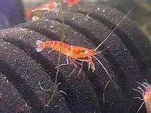 Metabetaeus lohena is an alpheid scavenger, which will also hunt small anchialine invertebrates.[4] M. lohena grows to lengths of 18 mm and are pale pink to vibrant red in colour.[5] Shrimp possess large claws and a clearly visible mandibular spot.[5] Females once gravid will produce a mass of 20 to 29 eggs.[4] M. lohena larvae lack a yolk sack, which suggests the species possess a planktotrophic larval feeding phase.[4] M. lohena have been recorded to live for up to 6 years.[2]
