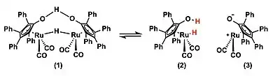 - ↑ Shvo, Youval.; Czarkie, Dorotha.; Rahamim, Yocheved.; Chodosh, Daniel F. (1986-11-01). "A new group of ruthenium complexes: structure and catalysis". Journal of the American Chemical Society. 108 (23): 7400–7402. doi:10.1021/ja00283a041. ISSN 0002-7863.