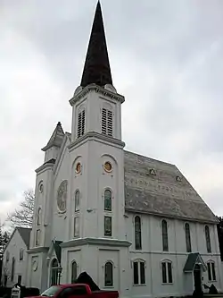 Methodist Episcopal Church is a historic Methodist Episcopal church located at Dryden in Tompkins County, New York. It is a 2+12-story frame church structure built in 1874 in the Romanesque Revival style. It is located at the northeast corner of the "four corners" main intersection and, with its towering spire, serves as a focal point and community landmark.[2]