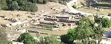 The Athenian Metroon was located on the west side of the city's Agora, in the Old Bouleuterion, which formerly housed the city council. At the end of the 5th century BC, the New Bouleuterion was built and the council's former home converted into a temple to Cybele. Supposedly, the Athenians had killed one of her wandering priests when he attempted to introduce her cult; the plague which then visited the city was dealt with by honoring her. (The account may, however, have been a later invention, as the earliest source is from the 4th century AD.)[1][2][3][4] The Metroon continued to serve a public function, housing the official archives of the city.[5]