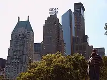 The neighborhood was historically part of an artistic hub that developed around the two blocks of West 57th Street from Sixth Avenue west to Broadway during the late 19th and early 20th centuries, following the opening of Carnegie Hall.[7][8][9] Several buildings in the area were constructed as residences for artists and musicians, such as 130 and 140 West 57th Street, the Rodin Studios, and the Osborne Apartments, as well as the demolished Sherwood Studios and Rembrandt. In addition, the area contained the headquarters of organizations such as the American Fine Arts Society, the Lotos Club, and the American Society of Civil Engineers.[10] The site of Metropolitan Tower was occupied by several low-rise buildings of four and five stories, including the Little Carnegie Theater, which closed in 1982.[11]