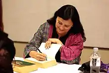 In 2003, author Alisa Valdes-Rodriguez published The Dirty Girls Social Club, a chick lit novel aimed at Latina women. Valdes-Rodriguez was dubbed the godmother of Chica lit by Seattle Times magazine.[28] Unlike other works of Mexican American literature, Chica lit targeted middle-class women like Valdes-Rodriguez, who described herself as "an Ivy League graduate, middle-class person who just lives a regular American life—you know, born and raised here, don't speak all that much Spanish".[28] Michele Serros was a Latina writer drawing on her own life experiences, much of her works gave voice to the complexities of lives straddling two worlds: working-class Mexican-American heritage and southern California pop culture.[29][30] She described how she never quite fit in through poems and prose that were both poignant and hilarious. Pam Muñoz Ryan has written over forty books for young people, including picture books, early readers, and middle grade and young adult novels. Her novel Esperanza Rising[31] was commissioned as a play by the Minneapolis Children's Theatre and has been performed in venues around the US including the Goodman Theatre in Chicago, and the Cutler Majestic Theatre in Boston.[32] Angela Morales Her essay "The Girls in My Town" appeared in The Best American Essays, 2013, edited by Cheryl Strayed, and her essay "Bloodyfeathers, R.I.P." appeared as notable essay in Best American Essays 2015.
