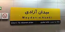 Meydan-e Azadi Metro Station is the sixteenth station of the Tehran Metro Line 4 and is located in Azadi Square, Shaheed Baradaran Rahmani Highway, between Ostad Moein and before Bimeh.[1][2]