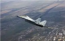 The Mikoyan MiG-29K (Russian: Микоян МиГ-29K; NATO reporting name: Fulcrum-D)[9] is a Russian all-weather carrier-based multirole fighter aircraft developed by the Mikoyan Design Bureau. The MiG-29K was developed in the late 1980s from the MiG-29M. Mikoyan describes it as a 4+ generation aircraft.[10][11]