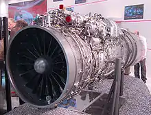 The MiG-29K has two widely spaced RD-33MKs. The early prototypes were fitted with two RD-33K turbofan engines, each with afterburner thrust of 86.3 kN (19,800 lb) and a possible take-off thrust of 92.2 kN (20,723 lbf) for shipborne operations.[33][34] The RD-33MK engine features 7% higher power over the base RD-33, enabled by the usage of improved materials for the turbine blades.[35][36]