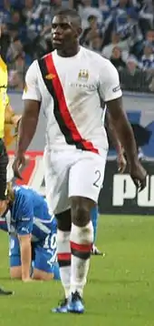 At the start of the 2011–12 season, Richards set up the two goals in the first two league matches to give Manchester City a perfect start to the season.[89] By the end of August, he signed a contract extension with the club, keeping him until 2015.[90] Richards made his UEFA Champions League debut, starting the whole game, in a 2–0 loss against Bayern Munich, in what turned out to be his only appearance in the competition.[91] Since the start of the 2011–12 season, he established himself in the starting 11, playing in the right-back position.[92] But Richards found himself rotated under Mancini's management, which saw him dropped from the first team at times.[93] Richards then set up two goals in two matches between 15 October 2011 and 23 October 2011, including one in a 6–1 win over rivals, Manchester United.[94] This was followed up by making his 200th appearance for Manchester City, in a 3–1 win over Wolverhampton Wanderers on 29 October 2011.[95] It was not until on 19 November 2011 when he scored his first goal of the season, followed up by setting up the club's third goal of the game, in a 3–1 win over Newcastle United.[96] After the match, his performance was praised by teammate, Joleon Lescott.[97] Between December and February, Richards found himself out of the first team on three occasions, due to injuries.[98] He captained the side on three occasions as well: twice against Liverpool in both legs in the League Cup and once in the league against Fulham.[99] Towards the end of the 2011–12 season, Richards’ playing time was reduced and found himself placed on the substitute bench, due to the hamstring injury he sustained.[100] Despite this, Manchester City won the Premier League in 2011–12, and Richards was nominated for the club's Player of the Year award.[101] In addition to making thirty–seven appearances and scoring once in all competitions, Richards finished the season with five assists – the most of any defender in the Premier League.[102]