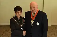 Friedlander in 2016, after his investiture as a Knight Companion of the New Zealand Order of Merit by the governor-general, Dame Patsy Reddy