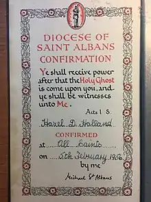 Confirmation certificate signed by Michael St Albans