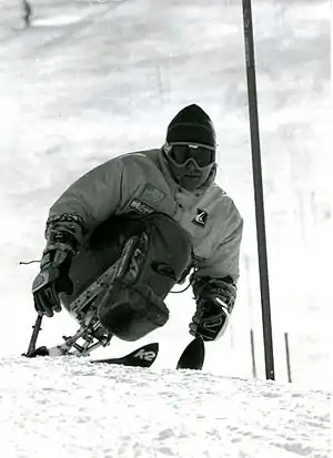 After the accident, he turned to wheelchair racing and in February 1986 won the Australian championships in Adelaide.[4] However, he found himself alienated in track athletics because he was pushing a wheelchair as opposed to running.[4] In 1987, he was taught to ski by George MacPherson, one of the founders of sit skiing in Australia.[4] He enjoyed skiing as it took him to places he couldn't get to in a wheelchair. In 1988, ski coach Dean Sheppard invited him to Canada for ski racing. This was followed by his appearance at the 1990 IPC Alpine Skiing World Championships in Winter Park, Colorado.[4]