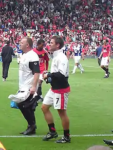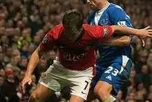Owen scored his first goal for United on his debut, scoring an 84th-minute winner after coming on as a substitute in a pre-season friendly against a Malaysian XI;[108] he followed this up by scoring three more goals in United's pre-season games.[109][110] Owen made his league debut for United when he came on as a substitute against Birmingham City on 16 August in a 1–0 win,[111] and scored his first competitive goal in a Manchester United shirt against Wigan Athletic on 22 August in a 5–0 away win.[112] On 20 September, Owen scored his first goal at Old Trafford, in the sixth minute of stoppage time against local rivals Manchester City to give United a 4–3 derby win. This meant that Owen had now scored in his fourth derby, after scoring in the Merseyside derby, El Clásico and the Tyne–Wear derby in previous years.[113] Owen struggled to recall the moments immediately after the goal, and said that it ranked as one of his most important.[114] On 27 October, Owen scored a goal in the 2–0 away win against Barnsley to qualify United past the fourth round of the League Cup. On 3 November, Owen scored his first Champions League goal for Manchester United, as he grabbed United's first in the 3–3 draw against CSKA Moscow.[115] Owen's seemingly slim chances of earning a place in Fabio Capello's England squad for the 2010 World Cup finals in 2010 received a boost when on 8 December 2009, Owen scored his first hat-trick for Manchester United in a 3–1 away win against VfL Wolfsburg in the Champions League, his first hat-trick since 2005.[116] On 28 February 2010, Owen scored United's first goal in their 2–1 victory over Aston Villa in the 2010 League Cup final, but had to be substituted after pulling up on 42 minutes. Originally thought to be a minor injury, on 5 March it was announced Owen required surgery on his hamstring, ruling him out for the rest of the season.[117]