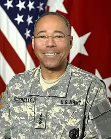 Rochelle's staff assignments included operations officer, professional development officer, and ultimately as deputy chief, General Officer Management Office, Office of the Chief of Staff Army, Headquarters Department of the Army; between commanding the Brunswick Recruiting Battalion and as the garrison commander at Fort Monroe, Lieutenant General Rochelle served as the Division G-1 and adjutant general of the 101st Airborne Division (Air Assault); and he served as the senior military assistant to the Deputy Secretary of Defense, the Honorable John J. Hamre, and later as the special assistant to the deputy chief of staff for personnel. He served as the director of the U.S. Army Installation Management Agency (IMA). He assumed duties as the deputy chief of staff, G-1, United States Army, in June 2006.[2]
