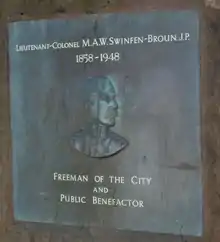 - 1 2 3 4 5 6 7 "Monument to Lieutenant-Colonel Swinfen Broun (1858-1948)". Public sculpture and Monuments Association. Retrieved 26 March 2012.