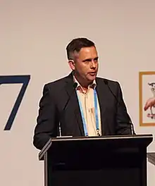 ![]() Michael Gabbett chairing 2017 RACP Congress in Melbourne | |