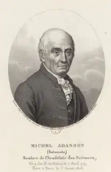 Michel Adanson (7 April 1727 – 3 August 1806) was an 18th-century French botanist and naturalist who traveled to Senegal to study flora and fauna. He proposed a "natural system" of taxonomy distinct from the binomial system forwarded by Linnaeus.