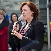 In the 2013 election Mungall was re-elected MLA for Nelson-Creston.[53] She received more votes than her opponents, the Liberal's Greg Garbula and Green's Sjeng Derkx combined.[54] Following the election, Mungall was named Social Development Spokesperson in the official opposition shadow cabinet.[55] She has also taken on the role of Opposition Deputy House Leader and from 2013 to 2014 was the Chair of the Opposition Social Policy Committee.[56]