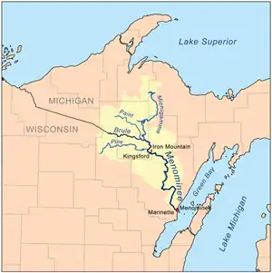 The Michigamme River (/ˈmɪʃəɡɒmi/ mish-ə-GAH-mee) is a 67.0-mile-long (107.8 km)[1] tributary of the Menominee River on the Upper Peninsula of Michigan in the United States. Via the Menominee River, its water flows to Lake Michigan.