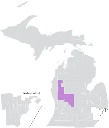 The district was located almost entirely within Michigan's 4th congressional district, also slightly extending into the 3rd district. It overlapped with the 70th, 93rd, 97th, 99th, and 102nd districts of the Michigan House of Representatives.[7]