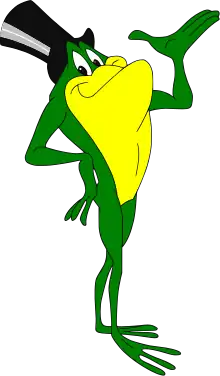 The frog's earliest name was "Enrico", as given in The Bugs Bunny Show (1960).[4] The character's later, enduring name comes from the song "The Michigan Rag" (an original song written by Jones, Maltese, and musical director Milt Franklyn), which he sings in the cartoon. In a clip from a DVD special, Jones stated that he had come up with the name "Michigan Frog" during the 1970s and was inspired to add the "J." as a middle initial while being interviewed by the writer Jay Cocks.[5]