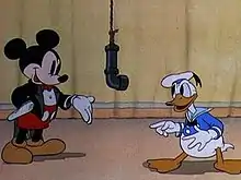 Mickey's Amateurs is a 1937 American animated short film produced by Walt Disney Productions and released by United Artists. Originally entitled Mickey's Amateur Concert during production, the cartoon depicts an amateur talent show hosted by Mickey Mouse. It was the 94th short film in the Mickey Mouse film series, and the fifth for that year.[2] It was co-directed by Pinto Colvig, Erdman Penner, and Walt Pfeiffer, and features original and adapted music by Oliver Wallace. The voice cast includes Walt Disney as Mickey, Clarence Nash as Donald Duck, Florence Gill as Clara Cluck, and Pinto Colvig as Pete and Goofy.[3][4]