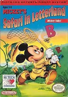 Mickey's Safari in Letterland is a 1993 educational Nintendo Entertainment System video game starring Disney's Mickey Mouse. This video game is intended for preschoolers and toddlers. Basic literacy skills are taught in this side-scrolling video game.