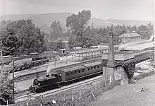 The population of Petworth in 1851 was 2,439 and of Midhurst 1,481.[16] A separate company, the Mid-Sussex & Midhurst Railway, received authority to continue the line to Midhurst under an Act of 13 August 1859. It was originally the intention of the Mid-Sussex & Midhurst Railway to seek to extend its line to Petersfield, but the LBSCR would not support such an extension, as being contrary to a territorial exclusivity agreement with the LSWR.[12] There was some delay due to the difficulty in raising capital, but the line to Midhurst opened on 15 October 1866.[15][1][11] The company was acquired by the LB&SCR by an Act of 30 July 1866, but this only took effect in June 1874.[12][17]