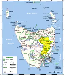 The Midlands is a region of Tasmania between Launceston and Hobart. It also refers to the relatively flat, dry agricultural area, so named because it covers the region between the two cities. Its name is probably also influenced from the Midlands in the United Kingdom. It lends its name to the Southern Midlands Council, Northern Midlands Council, and the Midland Highway.[3] The region is sometimes conflated or confused with the adjacent region of the Central Highlands—with the added term Tasmania's heartland.[4]