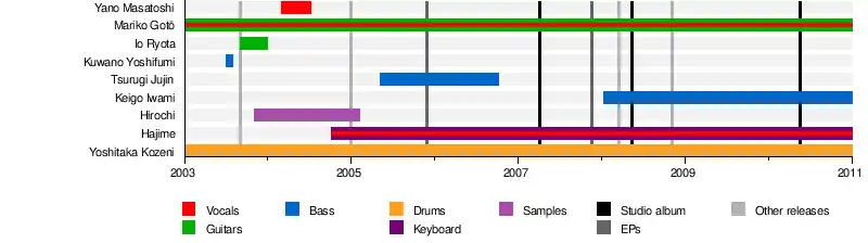 - 後藤まりこ (Mariko Gotō) - lead vocals, guitar (2003-2010)