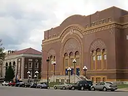 ![]() The Moolah Temple (pictured), designed by Helfensteller, Hirsch and Watson is one of the contributing buildings. | |