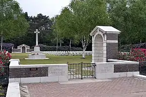 The Cross of Sacrifice at the cemetery was designed by Sir Reginald Blomfield.