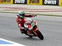 After joining the Red Bull KTM Ajo team, he became the first Portuguese rider to win a motorcycle Grand Prix with a victory at Mugello.[2] After taking a second victory in three races, at Assen,[5] Oliveira suffered a heavy crash during the first practice session of the following Grand Prix in Germany which forced him to withdraw from the race due to a broken and displaced metacarpal in the left hand. Returning from injury in Indianapolis his best result in the following three races was an eighth-place finish at Brno. With only 6 races remaining in the season, Oliveira trailed championship leader Danny Kent by 110 points. Oliveira finished second at Misano, before winning at Aragon; he also pulled 35 points back on Kent over the two races. Another 35 points were pulled back on Kent, as Oliveira continued his top-two streak with second in Japan,[6] and a victory at Phillip Island.[7] The victory also stopped Kent from clinching the title – Oliveira trailed Kent by 40 points with 50 points available, and was the only rider that could catch Kent in the standings. Oliveira won again in Malaysia, and with Kent finishing seventh, Oliveira kept the title race alive heading to the final round in Valencia – 24 points behind, with 25 points available.[8] Oliveira won the race, but with Kent finishing ninth after a three-rider collision in the last corner, Oliveira fell six points short.[9]