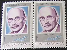 In 1983, Poșta Română issued a 1 leu stamp in his honor. The high school in Săveni was named after him in 1992.[11] Streets in Bucharest and Iași are also named after him.
