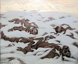 Mihailo Milovanović was killed in Užice at the end of November 1941 by Tito's Communist partisans who supposedly mistook him for an English spy.[4] After the Second World War and in the days of the Socialist Federal Republic of Yugoslavia, he was completely overshadowed, his name was conveniently omitted in encyclopedias devoted to art. To add insult to injury, the art authorities in Belgrade attributed most of Mihailo Milovanović paintings to Milan Milovanović instead.[5]