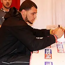 On September 8, Evans caught seven passes for 147 yards and a touchdown in a season-opening 48–40 win over defending the NFC South champion Saints.[70] The next week, Evans caught ten passes for 83 yards and a touchdown in a 27–21 win over the defending Super Bowl champion Philadelphia Eagles.[71] In a 30–27 loss to the Steelers on Monday Night Football in Week 3, Evans caught 6 passes for 137 yards and a touchdown, breaking the Buccaneers franchise record for touchdown receptions in a career with his 35th.[72] He eclipsed 5,000 career yards with 59 yards in Week 4 (at 25 years 40 days, the second youngest player to this mark by 113 days to Randy Moss) and after a bye week, Evans caught four passes for 58 yards in a 34–29 loss to the Falcons, breaking Mark Carrier's Buccaneers franchise record for receiving yards in a career. The following week, Evans caught 7 passes for 107 yards in a 26–23 win over the Browns, his 16th game with 100+ receiving yards, again breaking a Mark Carrier franchise record.[73] Evans then led all NFL receivers in Week 8 with 179 yards (a career second-best) on six receptions in a 37–34 loss to the Cincinnati Bengals, which included a career-long 72 yard reception for a touchdown in the fourth quarter.[74] The next two weeks were far less successful: In Week 9, Evans had just one reception for 16 yards on 10 targets against the Panthers,[75] and three receptions for 51 yards in Week 10. He rebounded in Week 11's 38–35 loss to the Giants with six catches for 120 yards and a touchdown and recovered a fumble by quarterback Jameis Winston in the end zone for another touchdown. In Week 12, he again broke the century mark with 116 yards on six receptions in the 27–9 win over th 49ers.[76] In the game, he passed 1,000 receiving yards on the season, joining Randy Moss and A. J. Green as the only receivers in NFL history to begin their careers with five consecutive 1,000+ yard seasons.[77] In Week 17, during a 34–32 loss to the Falcons, Evans caught six passes for 106 yards and two touchdowns; with that performance Evans broke the Buccaneers franchise record for receiving yards in a single season and became the youngest receiver in league history to reach 6,000 yards receiving in a career.[78][79]