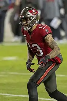 Michael Lynn Evans III (born August 21, 1993) is an American football wide receiver for the Tampa Bay Buccaneers of the National Football League (NFL). Evans played college football for the Texas A&M Aggies, earning consensus All-American honors after recording a school record of 1,394 receiving yards on 69 receptions. He was selected by the Buccaneers in the first round with the seventh overall pick in the 2014 NFL Draft.