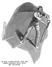 Mike Jackson playing cricket, illustrated by T. M. R. Whitwell (1907)