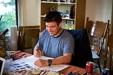 Russell is a graduate of the University of Oregon where he worked for The Oregon Voice, a campus publication.[2] He majored in Magazine Journalism and later began a career in media at The Clackamas Review, a Pamplin Media Group community paper in Milwaukie, Oregon. In early 2004, he joined The Oregonian as a freelancer. The first CulturePulp strip appeared in the paper in March 2004, followed by another series titled "Mr. Do and Mr. Don't." Since then, he has contributed articles and comics to Willamette Week, The Boston Globe and The Wall Street Journal.[3]