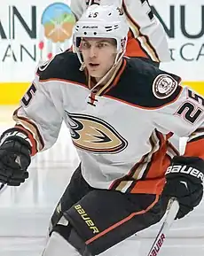 ![]() Santorelli playing for the Anaheim Ducks in 2016 | |||
